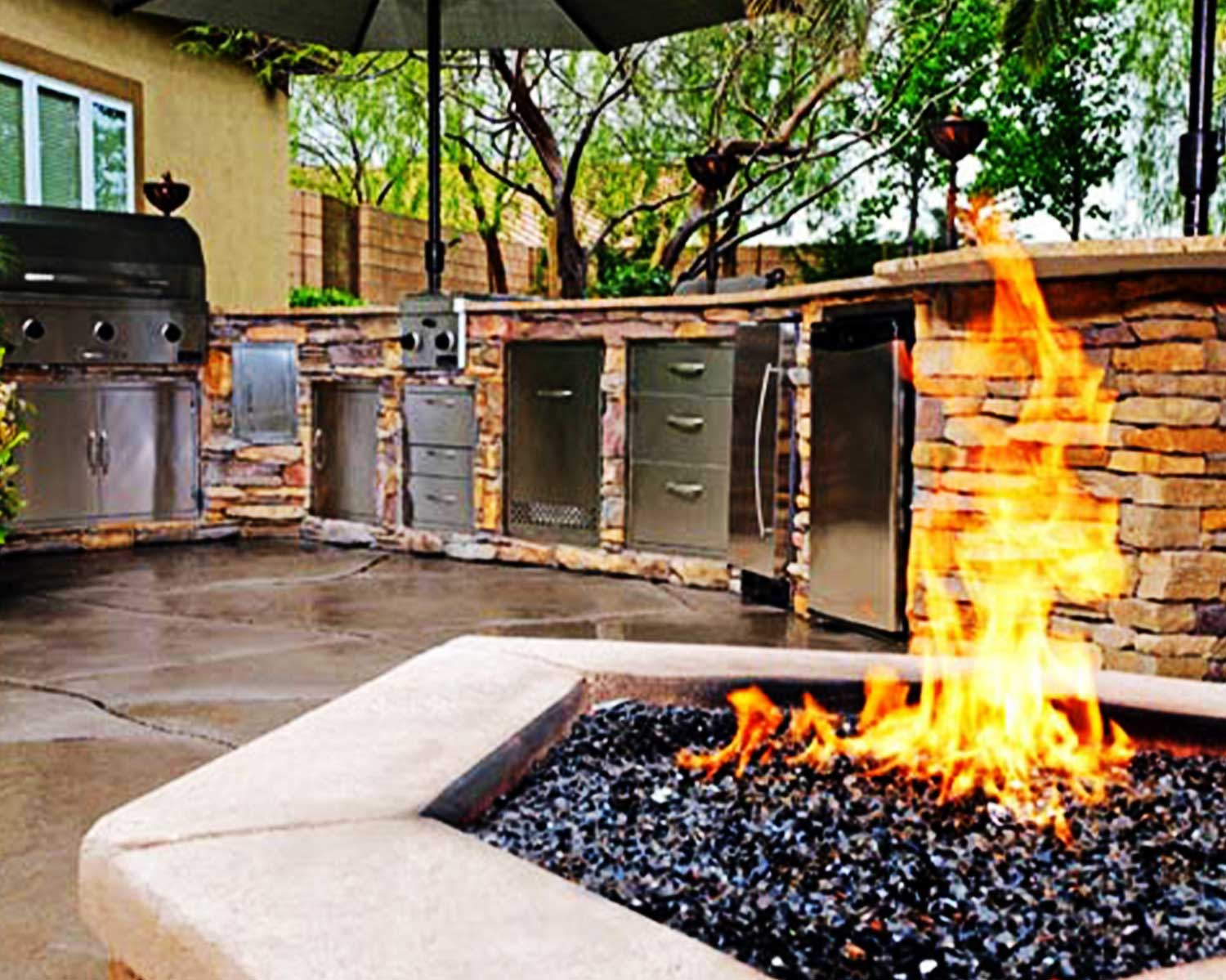 Outdoor Kitchens, Bars, Living Areas, Fire Pits, And Water Features
